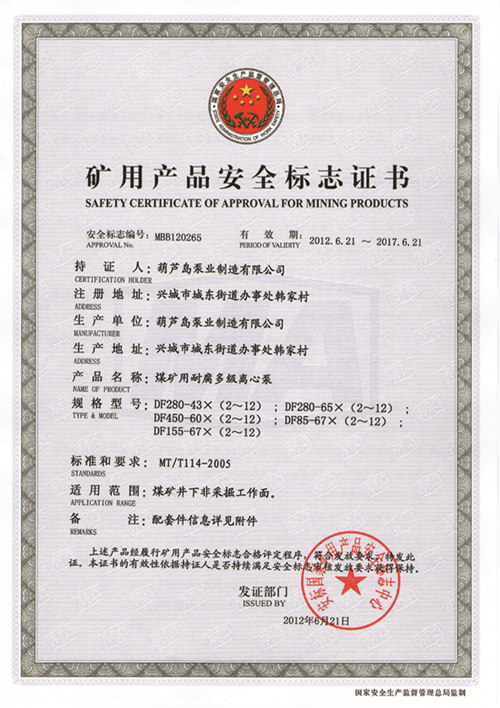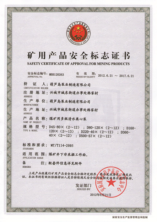 礦用產(chǎn)品安全標(biāo)志證書